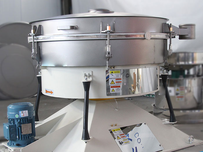 看細(xì)節(jié):進(jìn)料口 出料口 篩網(wǎng) 振動(dòng)電機(jī) 橡膠拉簧 氣動(dòng)升降裝置