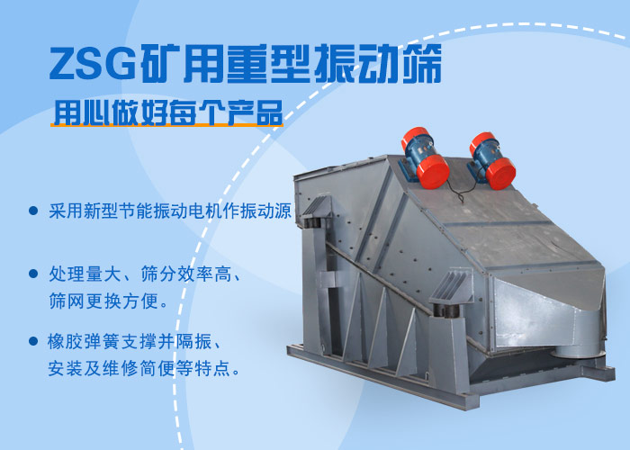 zsg礦用重型振動(dòng)篩是大漢機(jī)械專為大產(chǎn)量篩分需求的用戶自行研制的一種新型、高效的篩分設(shè)備,主要用于冶金、礦山、煤炭、建材、電力、化工等行業(yè),該機(jī)采用新型能耗低振動(dòng)電機(jī)或激振器作振動(dòng)源,橡膠彈簧支撐并隔振,具有處理量大、篩分效率高、篩網(wǎng)更換方便、安裝及維修簡(jiǎn)便等特點(diǎn)。