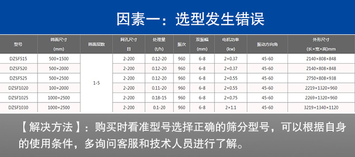 【解決方法】:購買時看準型號選擇正確的篩分型號,可以根據(jù)自身的使用條件,多詢問客服和技術(shù)人員進行了解。