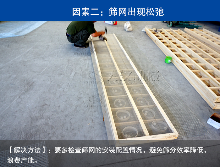 【解決方法】:要多檢查篩網(wǎng)的安裝配置情況,避免篩分效率降低,浪費產(chǎn)能。