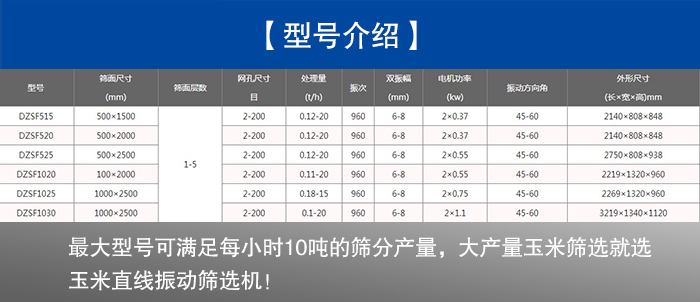 大型號(hào)可滿(mǎn)足每小時(shí)10噸的篩分產(chǎn)量,大產(chǎn)量玉米篩選就選玉米直線(xiàn)振動(dòng)篩選機(jī)!