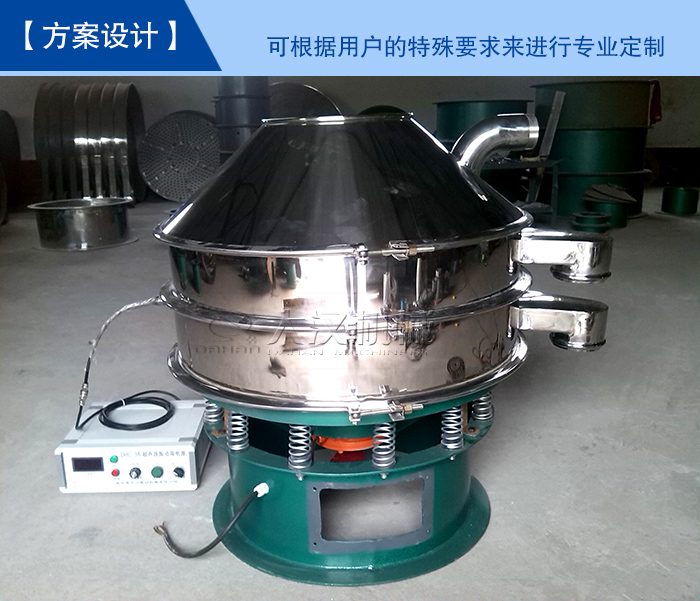 【方案設計】—— 這是大漢機械在標準型號上延伸的定做方案,可根據用戶的特殊要求來進行專業(yè)定制(如:框體、底座加高,進料口加料斗,出料口加閘門等)為您打造專屬的貴金屬粉末超聲波振動篩。