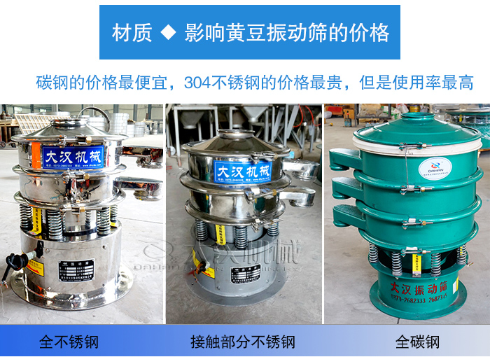影響黃豆振動篩價格的因素有多種(如:材質、型號、層數(shù)、設計、廠家等),那么今天就以材質為例,為您說說黃豆振動篩的價格情況!