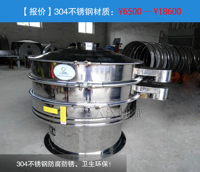 304不銹鋼防腐防銹、衛(wèi)生環(huán)保!——304不銹鋼材質的振動篩是采用304不銹鋼材質(兩種結構規(guī)格:一、整機均采用不銹鋼制成;二、物料接觸不分為不銹鋼材質,底座為碳鋼材質),它是食品、醫(yī)藥專用材質,雖然我們要篩分的是化學物料錫粉,但是對于衛(wèi)生環(huán)境要求較高的企業(yè)這也是不錯的選擇。