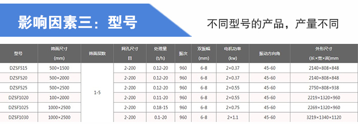 大漢機械生產(chǎn)的直線篩型號有:DZSF-515、DZSF-520、DZSF-530、DZSF-1020、DZSF-1030、DZSF-1540等標(biāo)準(zhǔn)型號,不同型號的產(chǎn)品皆是為了滿足不同用戶對于葵瓜子仁生產(chǎn)線篩分的需求,想要篩分大產(chǎn)量葵瓜子仁就需要使用大型號的直線篩,所以篩分產(chǎn)量是影響型號的重要因素。