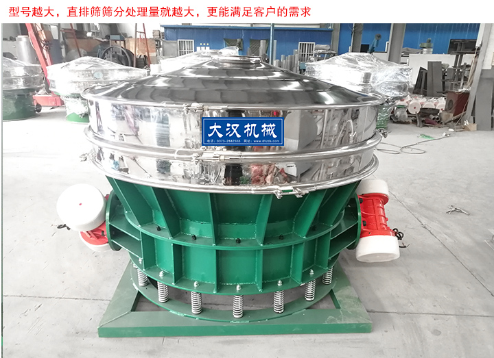 不同型號的直排篩單位時間內(nèi)處理物料的能力不同,需要根據(jù)您的具體要求,我們大漢會向你推薦合適的直排篩型號。型號越大,直排篩篩分處理量就越大,更能滿足客戶的需求。