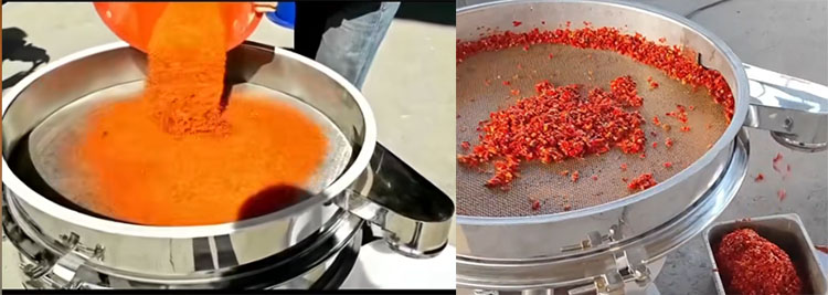 粗過(guò)濾/去籽去皮(20目 - 60目):·主要用于辣椒醬制作前的篩分處理,去除辣椒籽、辣椒梗、大片辣椒皮。這是制作細(xì)膩辣椒醬的關(guān)鍵一步,辣椒籽會(huì)影響口感和美觀,分離粗顆粒,得到基礎(chǔ)的辣椒漿,這個(gè)目數(shù)適合帶有一定顆粒感的剁椒醬、粗加工的原醬篩分。