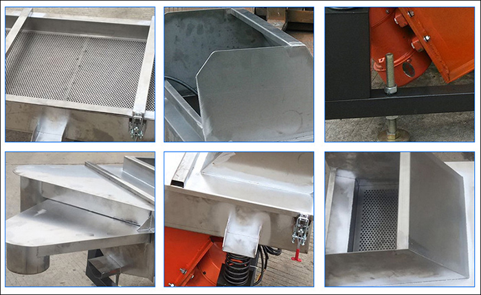 產(chǎn)品概述 食品直線振動篩是指食品行業(yè)篩分使用的長方形 振動篩 ,它的材質采用食品不銹鋼(如:304、304L、316、316L)精制而成,具有防腐、防銹、耐高溫的特點,廣泛應用于食品行業(yè)的粉狀和大、小顆粒狀物料的篩選、過濾、除雜,對于固液混合物體可進行粗濾,可安裝1-5層篩網(wǎng),同時滿足不同規(guī)格物料的分級使用,是一款處理量大、篩分效率高的輕型振動篩。 細節(jié)展示