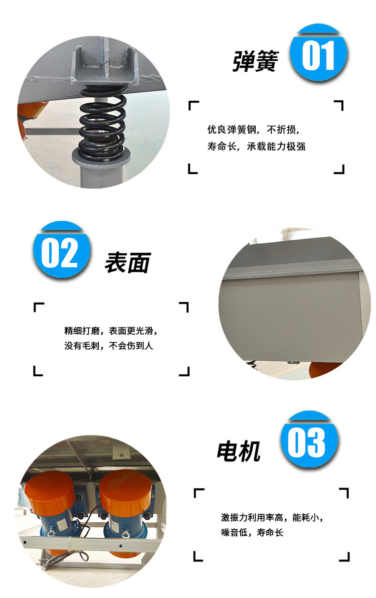 振動電機(jī):是整個篩機(jī)的動力來源,可根據(jù)篩分場所選擇普通振動電機(jī)或防爆振動電機(jī)。
